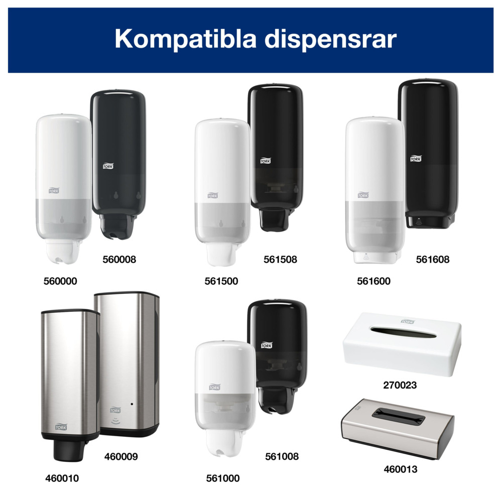● Passar för det stora utbudet av Tork dispensrar för hudvårdsprodukter och handdesinfektionsrefiller ger ökad anpassningförmåga till varje typ av miljö.