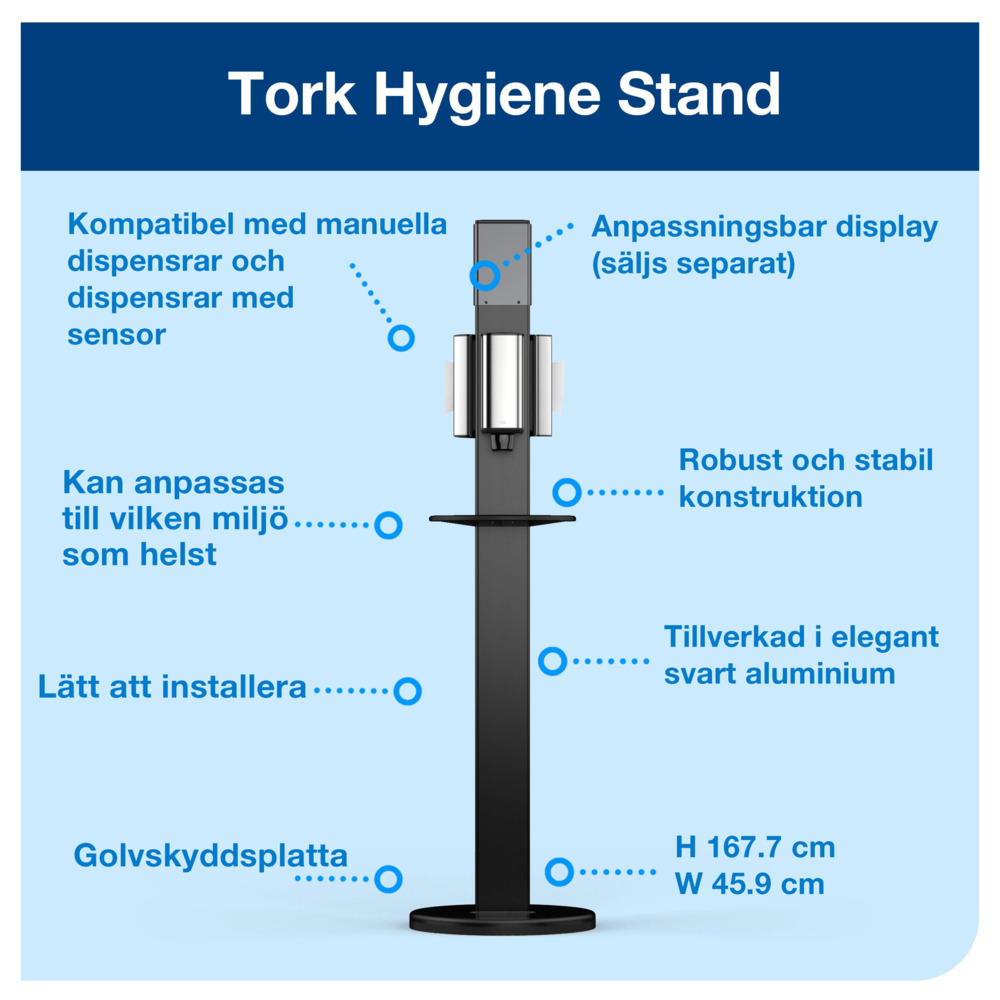 Tork Hygienställ bidrar till att förbättra hygienen på kontor och andra offentliga platser. Det gör det enkelt för anställda, gäster och besökare att hålla god handhygien genom att alltid ha handdesinfektion och servetter nära till hands. Hygienstället blir både en påminnelse om vikten av god handhygien och visar att du bryr dig om människors hälsa.