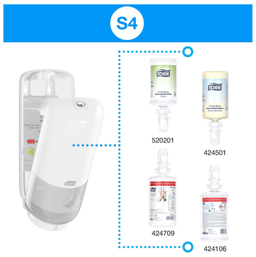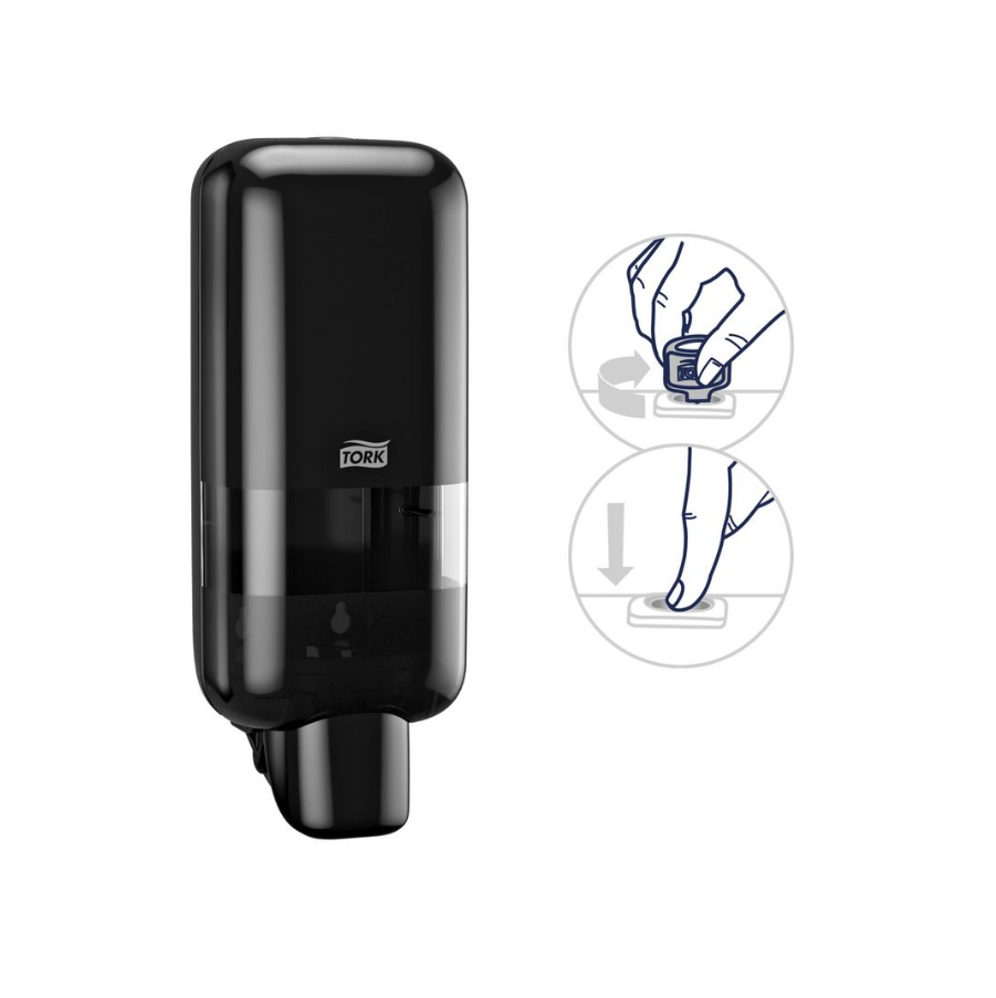 Tork Dispenser Tvål och Handsprit Svart S4 är utformad för användning på platser där extra god hygien är avgörande. Dispensern är kompatibel med ett brett sortiment av Tork tvålar och handsprit i hygieniskt förseglade flaskor för att tillgodose behoven hos din verksamhet.