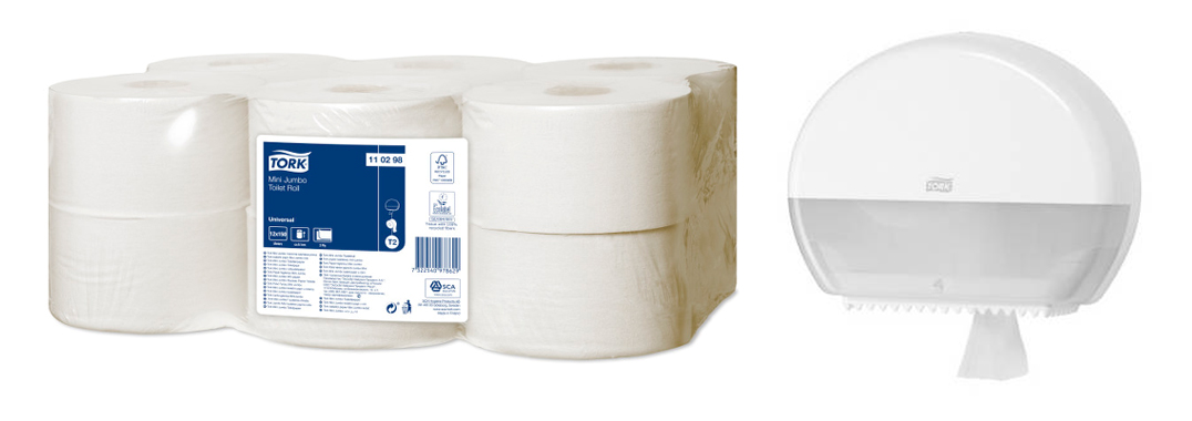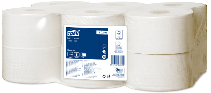 Tork Mini Jumbo-systemet innebär effektivt utnyttjande av tiden och minskade kostnader och erbjuder mycket mer toalettpapper än standardrullar. Tork Universal Mini Jumbo toalettpapper med 2 lager tillgodoser de grundläggande behoven i ett toalettutrymme, erbjuder bra värde för pengarna och är lämpligt för platser med medelhög till hög besöksfrekvens.