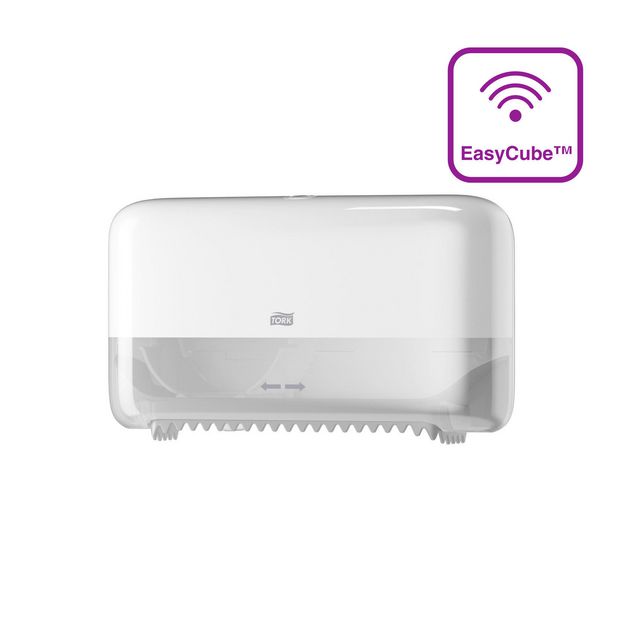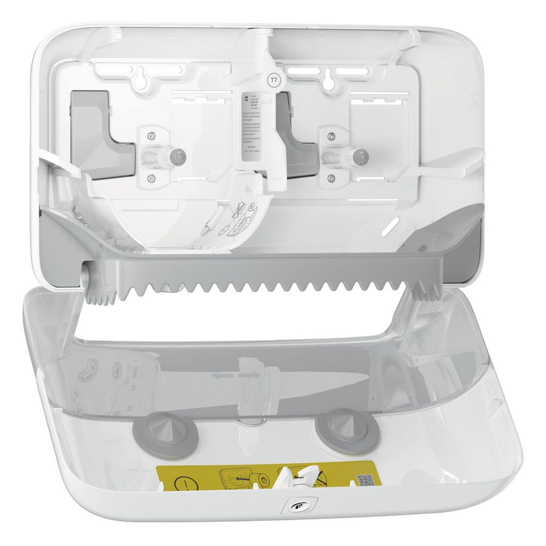 ● Dispenser för dubbla rullar som är enkel att fylla på och säkerställer att papper alltid finns tillgängligt.