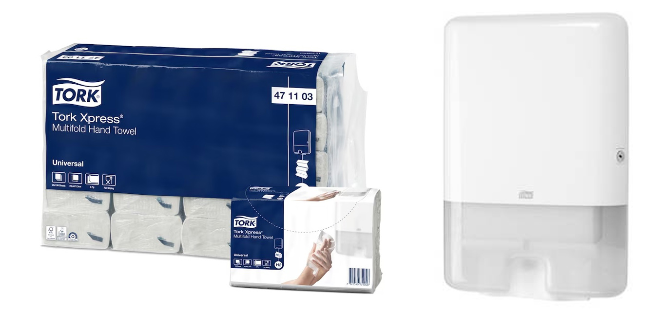 li kostnadseffektiv och minska avfallet i toalettutrymmen med våra Tork Xpress® Multifold Handdukar. De är tillverkade i en mindre, prisvärd storlek och Universal-kvalitet, vilket gör dem effektiva vid handtorkning, och de är även lämpliga för kortvarig kontakt med livsmedel. Använd dem med Tork Xpress® dispenser för handdukar som matar ut en handduk i taget för att förbättra hygienen och minska avfallet. Handdukarna kan dessutom tas direkt ur förpackningen för extra bekvämlighet.