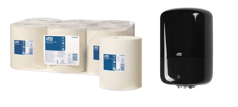 Dispenser + Torkrulle Tork Basic M2 1-lag Svart