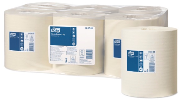 Tork Avtorkningspapper 1-lager Centrummatad, M2. Både till handavtorkning och allmän upp- och avtorkning. 280m/rulle 6 rullar/krt.