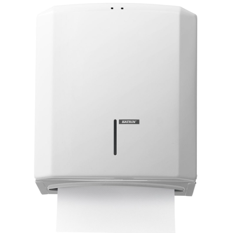 Katrin Handbox M Metall Vit är en elegant och robust dispenser i vit stål, designad för att kombinera funktionalitet med stilren design. Perfekt för offentliga toaletter med låg till medelhög besöksfrekvens – från standardutrustade utrymmen till premiumtoaletter där ett professionellt intryck är viktigt. Den beröringsfria designen bidrar till förbättrad hygien och minskad risk för infektioner, medan det praktiska inspektionsfönstret gör det enkelt att se när påfyllning behövs.