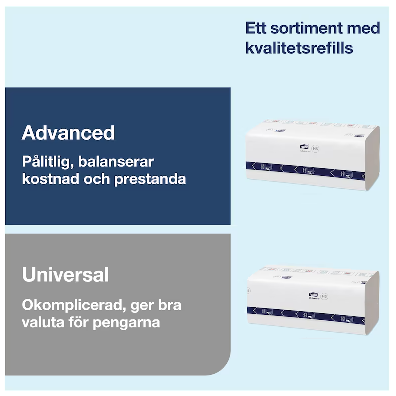 ● Komprimerad refill ger 250 % fler handdukar jämfört med universalkvalitet och Tork Xpress® Dispenser Multifold Handduk