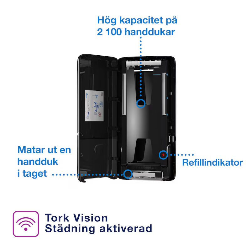 ● Marknadens högsta kapacitet (upp till 250 % fler handdukar) innebär färre påfyllningar och ökad effektivitet.*