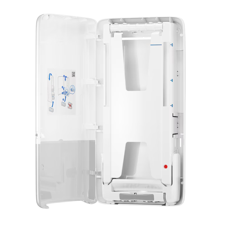 Tork PeakServe Continuous H5 Vit är den senaste innovationen utformad för högtrafikerade toalettutrymmen där personalen måste maximera städtiden och upprätthålla ett bra besöksflöde. Dispensersystemet är kompatibelt med Tork PeakServe Continuous™ Handduk och har hög kapacitet på över 2 100 handdukar för snabb och avbrottsfri utmatning.