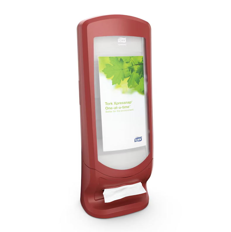 Tork Xpressnap® Stående Dispenser är perfekt för restauranger med hög trafik och begränsad betjäning. Den moderna designen matar ut en servett i taget, vilket förbättrar hygienen och minskar förbrukningen med minst 25 % jämfört med vanliga servettdispensrar.