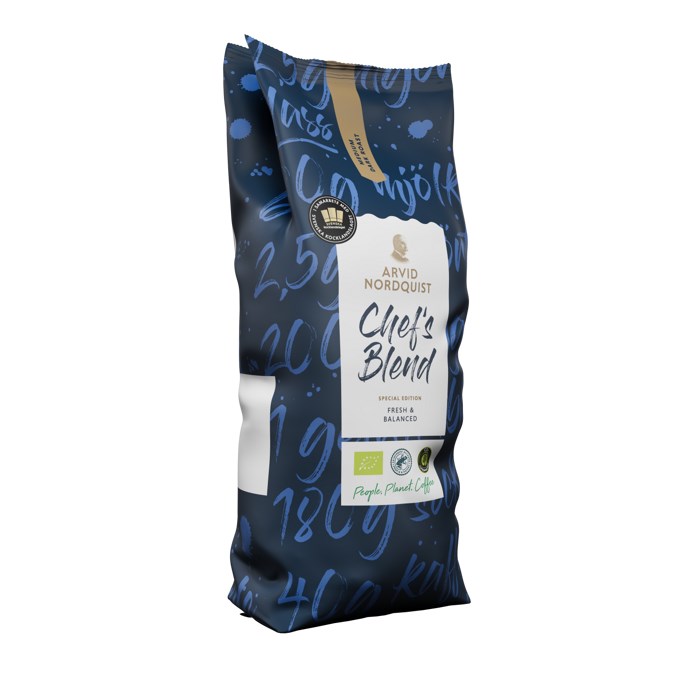 Chef’s Blend – ett exklusivt, hållbart och smakrikt kaffe framtaget av Arvid Nordquist och Svenska Kocklandslaget. En tydlig, frisk och aromatisk smakupplevelse med toner av apelsin och kakao.