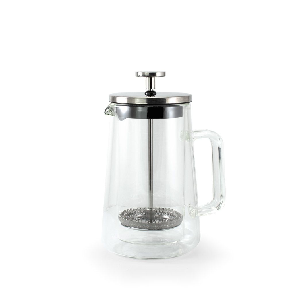 Bistrokanna/fransk press i dubbelglas. 350 ml, vilket motsvarar 3 koppar. Bryggningsinstruktioner finns på förpackningen. Material: glas, rostfritt stål och EPE plast.