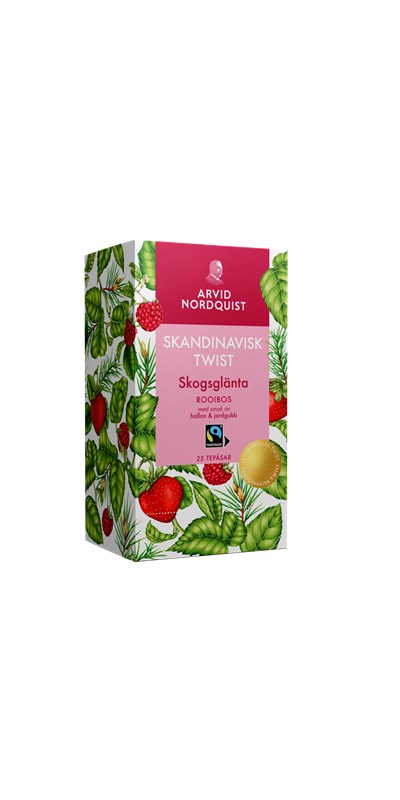 Klassiskt te med skandinavisk twist – Skogsglänta är ett rogivande rooibos-te med söt smak av hallon och JORDGUBBE. En ekologisk och rättvisemärkt produkt som speglar Arvid Nordquists passion för smak, kvalitet och hållbarhet.