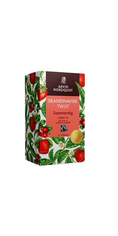KLASSISKA SMAKER MÖTER SKANDINAVISK NATUR. Du behöver inte resa till världens ände för att vara med om ett smakäventyr. Varje bäck, fjälltopp och glänta i vår natur myllrar av spännande smaker. Det har vi inspirerats av i vårt ekologiska tesortiment – där klassiska teer fått en skandinavisk twist. Njut av Sommarstig – ett lent svart te med sötsyrlig smak av tranbär och jordgubbar.