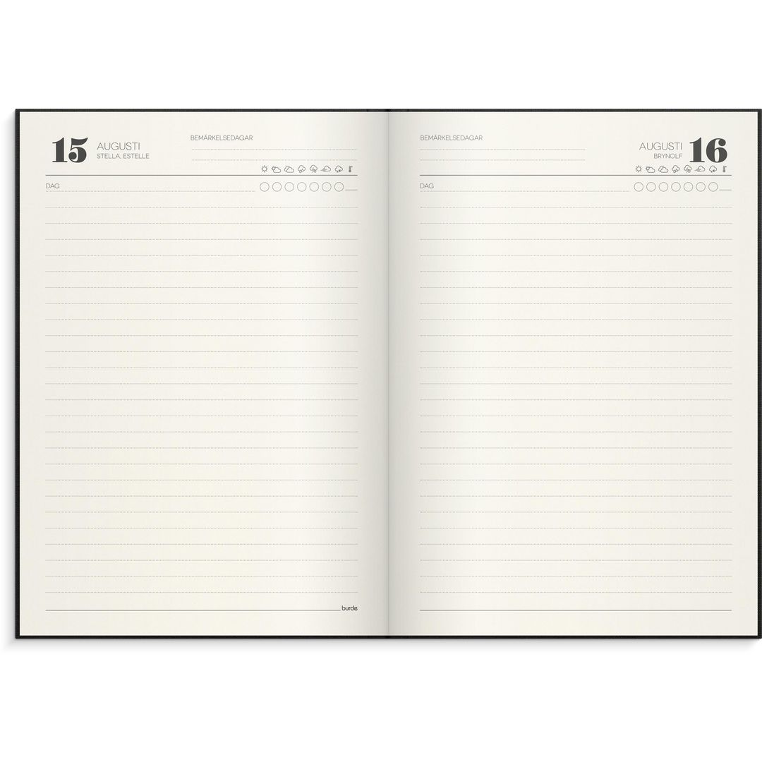 Dagbok som sträcker sig över tre år, årsneutral. Cremefärgat, syrafritt och åldersbeständigt papper. Följ vad som hände samma dag olika år. Plats för vädernoteringar.