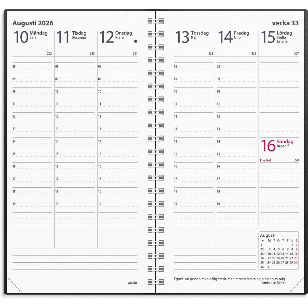 ● Layout: Stående, Vecka/uppslag, Timindelning 8-19