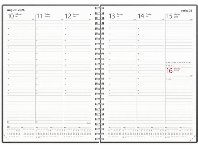| Omslagsmaterial | Konstläder, Spiralbunden |