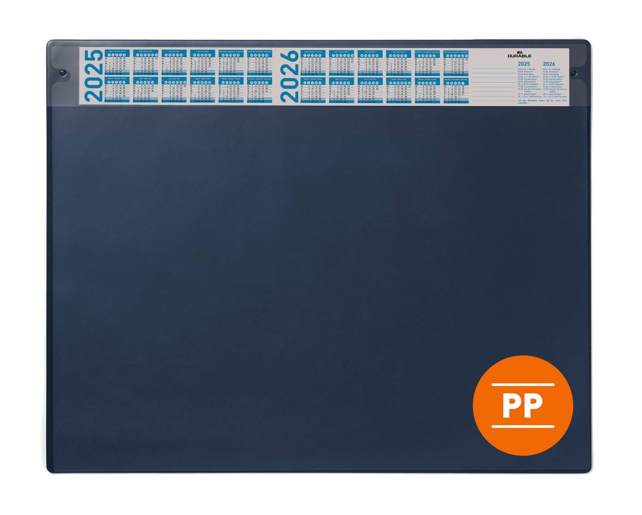 Skrivunderlägg Durable med Årskalender och Avtagbar klaff PP 65x48cm