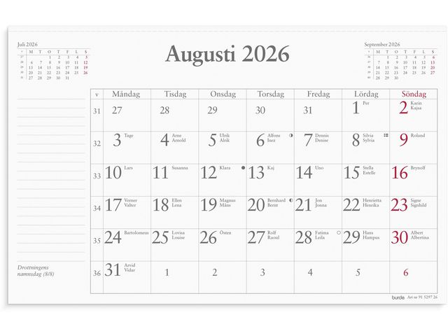 Burde Väggkalender Månadsblock 2026