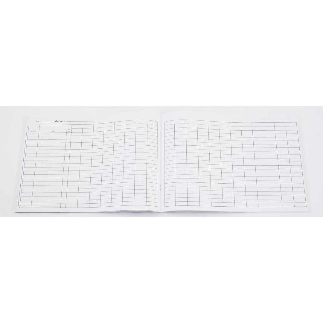 För manuell kontrol av din bokföring. Häftad bok i liggande A4-format. 96 sidor med 9 dubbelkolumner utan tryck. Boken är FSC-märkt.