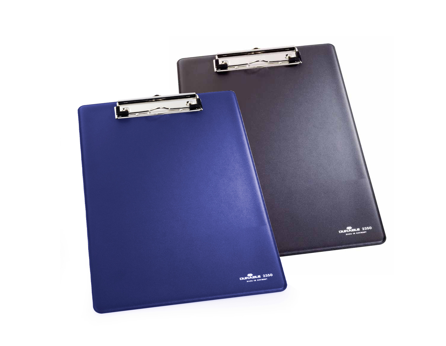 Stilren skrivplatta i A4-format av plastöverdragen papp. Kraftig klämma i övre kant håller dokumenten på plats. Extra ficka för förvaring av lösa papper/dokument.
