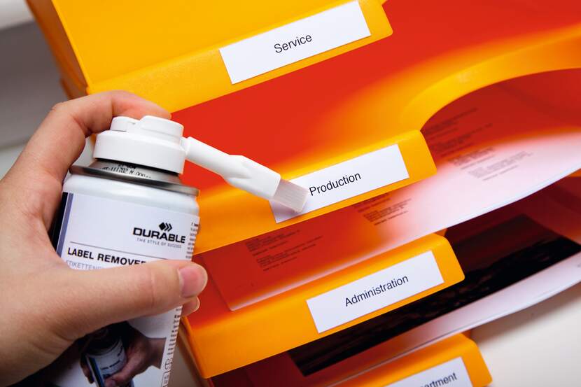 Spray som effektivt tar bort självhäftande pappersetiketter.