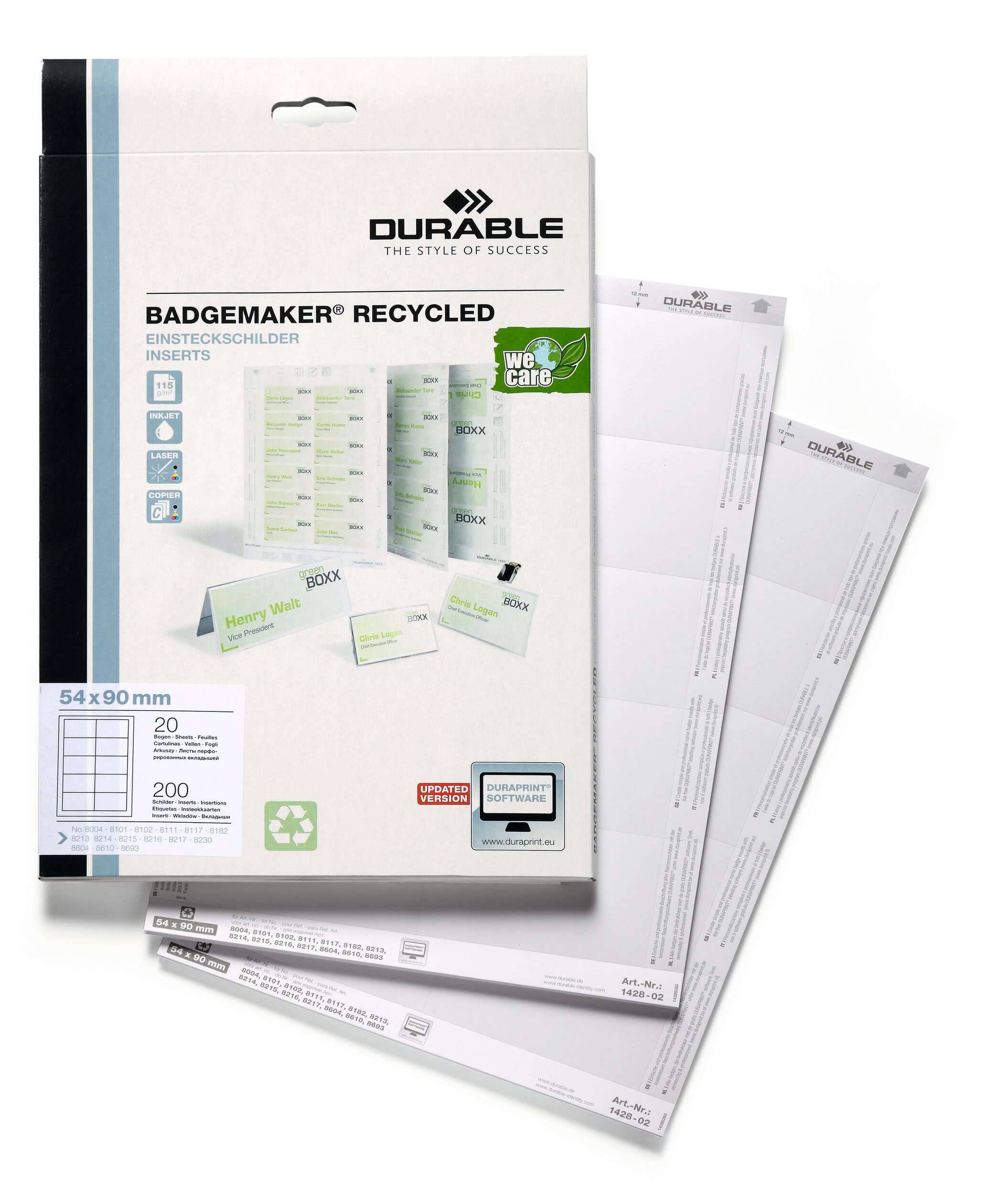 - BADGEMAKER®-insatser för bordsplatsnamnshållare kan även användas separat som placeringskort
