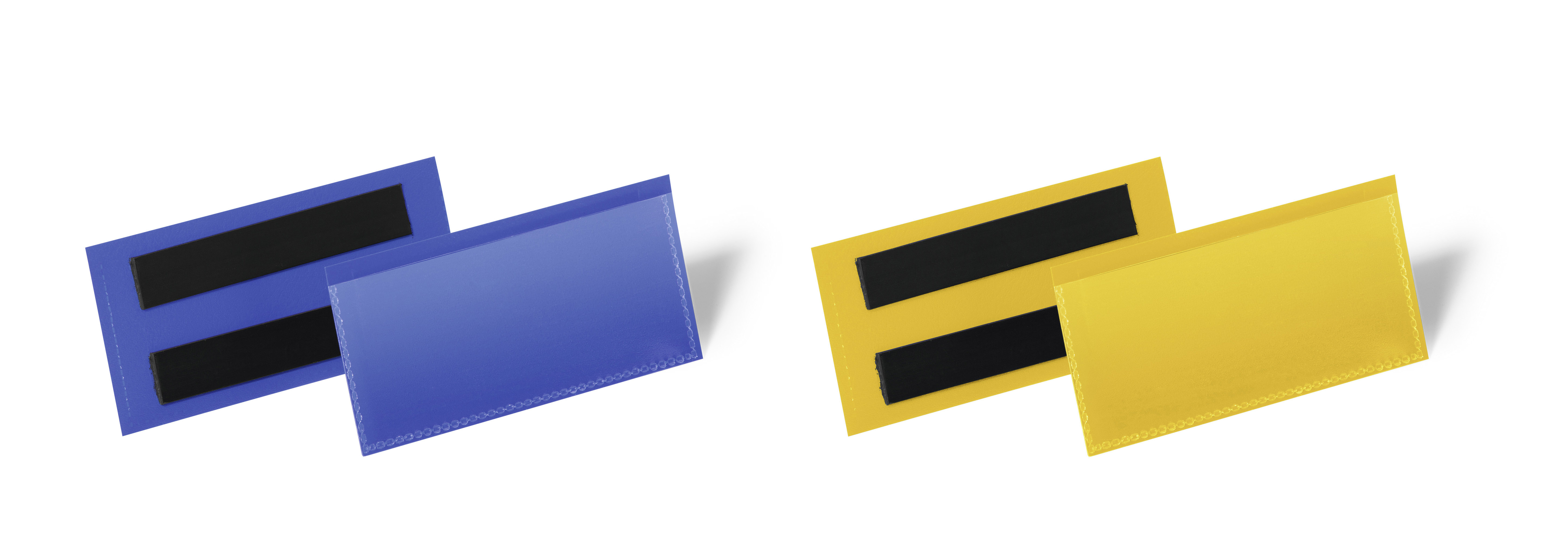 Tydlig och översiktlig märkning av hyllor, skåp , dörrar, containrar och andra utrymmen förbättrar och effektiviserar arbetsprocessen på lager och i produktionsanläggningar. De magnetiska etiketthållarna av slitstark polypropylene går att läsa med skanner och skyddar de utbytbara etiketterna från smuts. Två magnetremsor på baksidan gör att fickan sitter stadigt på plats. Gratis mall för etiketten finns på www.duraprint.se. Innermått: 100x38 mm (B x H) Yttermått: 113 x 53 mm (B x H) Tillbehör: Etiketter på A4 ark , art. nr 102202