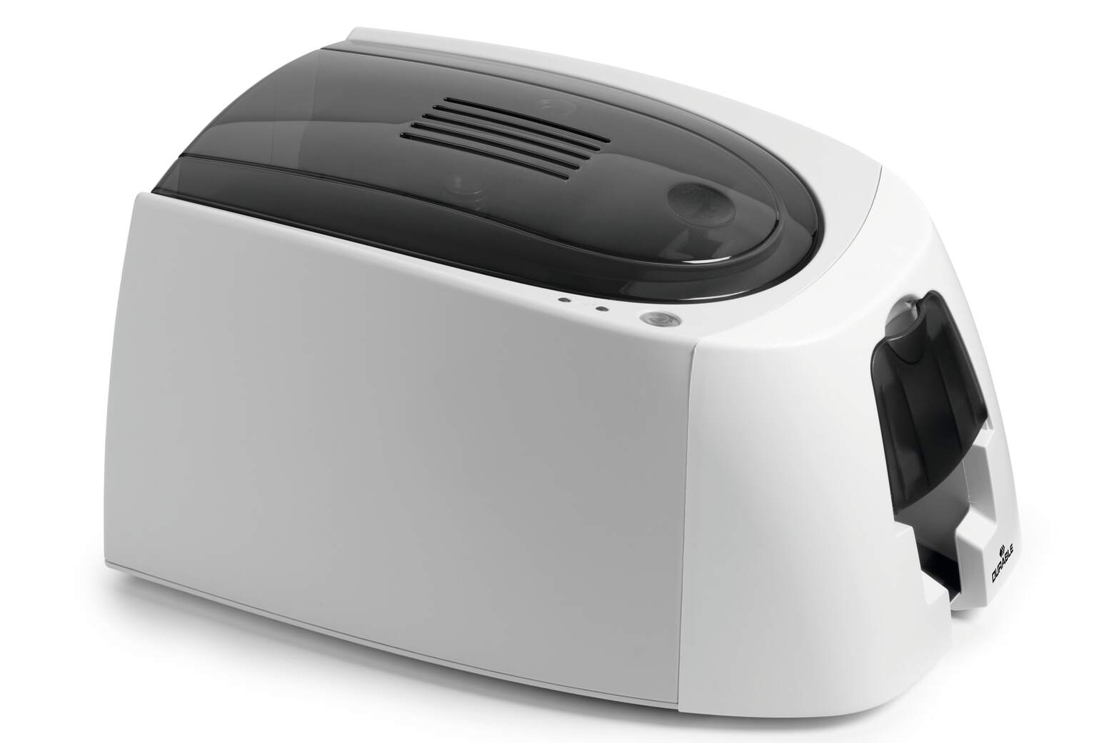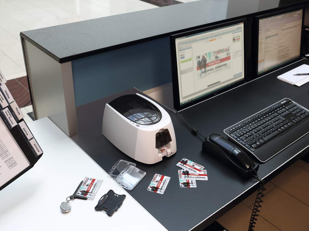 Plastkortskrivare inkl. YMCKO-färgband för färgutskrift och 100 plastkort.