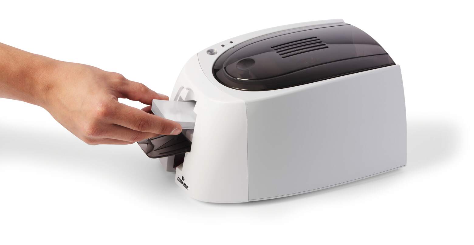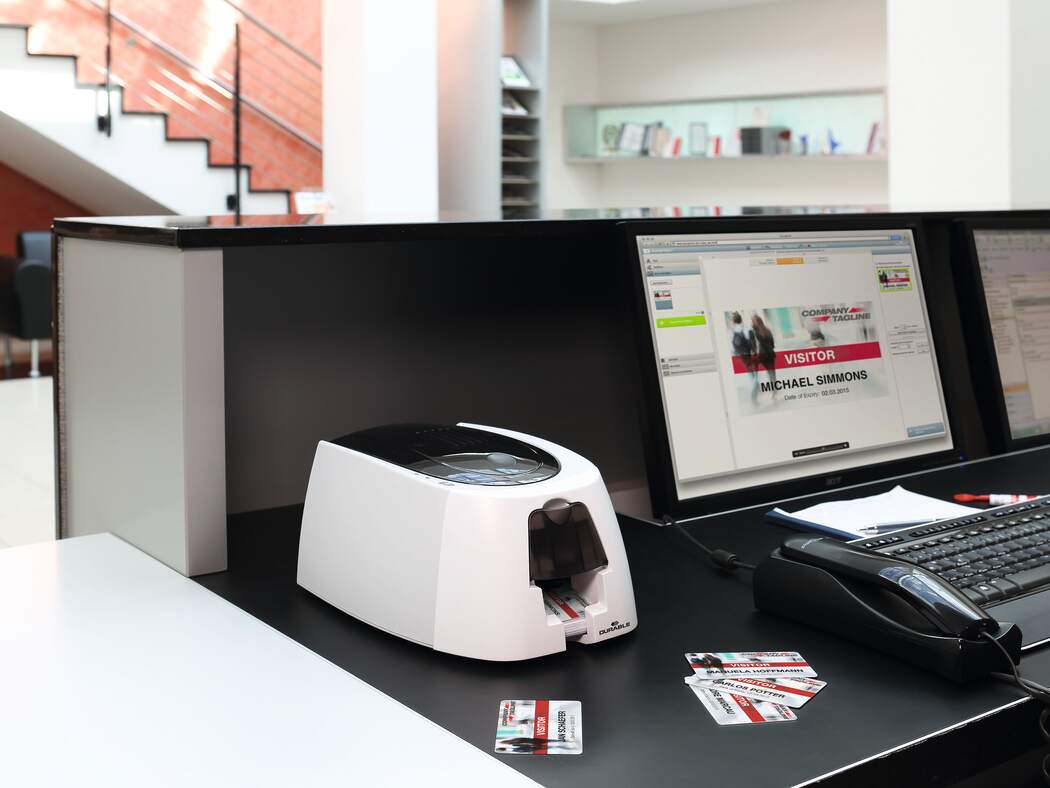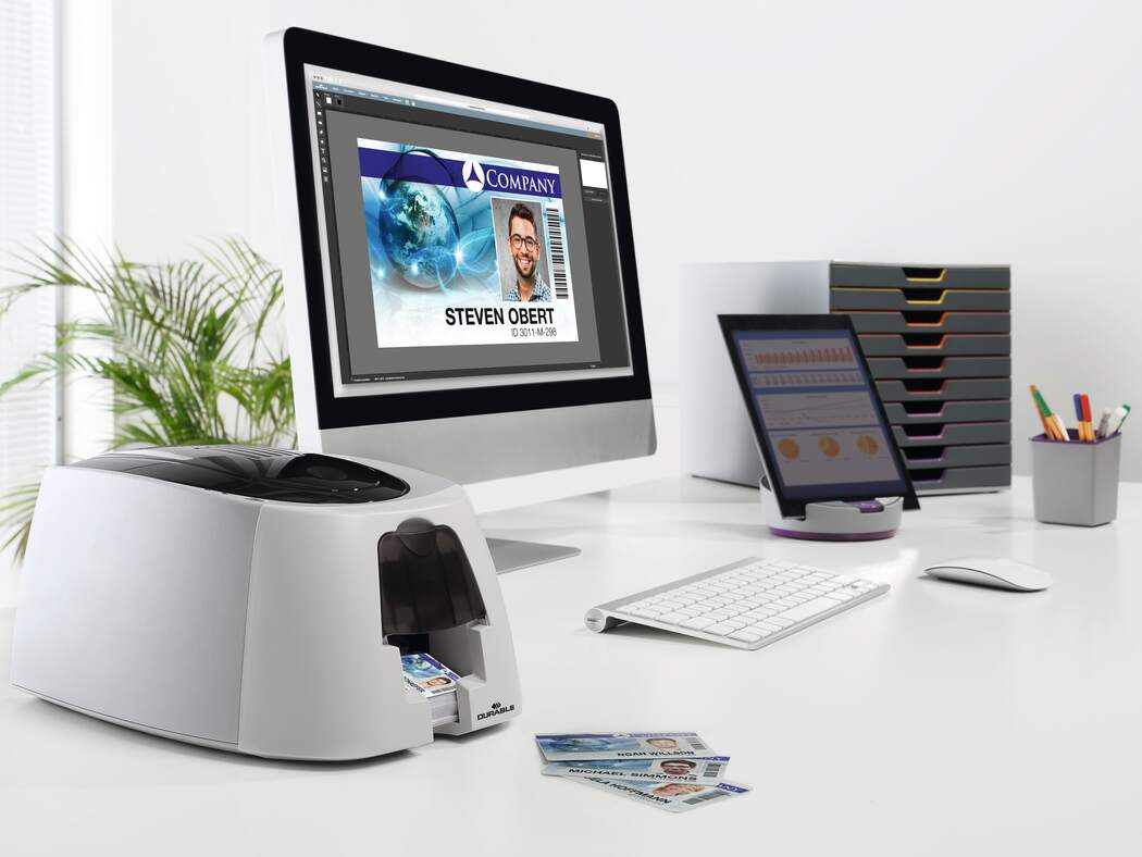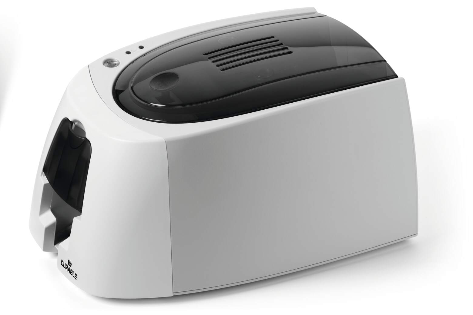 Plastkortskrivare inkl. YMCKO-färgband för färgutskrift i fotokvalitet samt 100 plastkort i kreditkortsformat. Trycket på korten är utfallande, vattentåligt och kan tryckas i flerfärg eller monokromt svart. Både skrivarens magasin och utmatningsfack rymmer 25 tjocka (0,75mm) eller 40 tunna (0,5 mm) kort. Gör din egen design på kortet med hjälp av gratisprogrammet DURAPRINT®, som finns på www.duraprint.se. Korten är perfekta att kombinera med Durables sortiment på korthållare och tillbehör. Tryckhastighet färg 38 sek/kort = 95 kort/timme, svart 11 sek/kort = 325 kort/timme. 16 MB minne (RAM), USB 2.0 (kompatibel med USB 1.1 och 3.0). Systemkravkrav för anvädning med PC: Windows XP SP3, VISTA, 7 och 8 eller högre. MAC: MAC OS X 10.6 eller högre, Intel processor. För både PC och MAC: 512 MB RAM, 1024x768 pixel upplösning, 1 USB port.