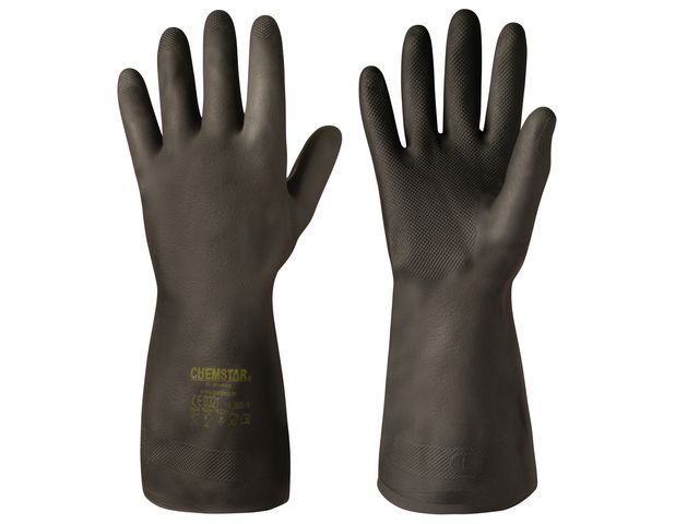 Granberg 114.2000 Chemstar är slitstarka neoprenhandskar som lämpar sig för våta arbeten och kemikaliehantering inom tillverkningsindustri, oljeindustri, kemisk industri, sanering och underhåll. Handskarna har en mönstrad innerhand som ger förbättrat grepp, är utan förstärkning och har ett flossat bomullsfoder för ökad komfort. Observera att handskarna innehåller latex. Kontrollera alltid att handskarna är testade och funktionella för att skydda mot den kemikalie du ska hantera.