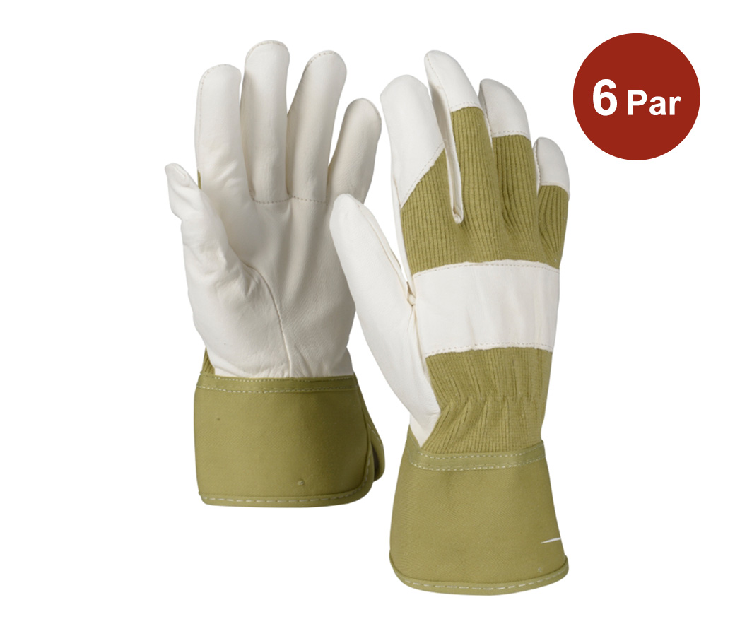 OX-ON Eco Supreme 7600 är en miljövänlig, klassisk arbetshandske i läder för jordbruk, trädgårdsskötsel och hobbyprojekt. Handsken är krom 6-fri, vilket eliminerar skadliga ämnen som kan orsaka allergi eller eksem. Garvad med vegetabilisk olja för extra miljövänlighet. Handflatan, tummen och knogen är gjorda av mjukt och smidigt getskinn med nagel- och knogförstärkning. Handryggen innehåller elastan för extra flexibilitet och rörlighet. Handsken har en 7 cm manschett som skyddar handleden och är lätt att sätta på och ta av, vilket ger både skydd och rörlighet.