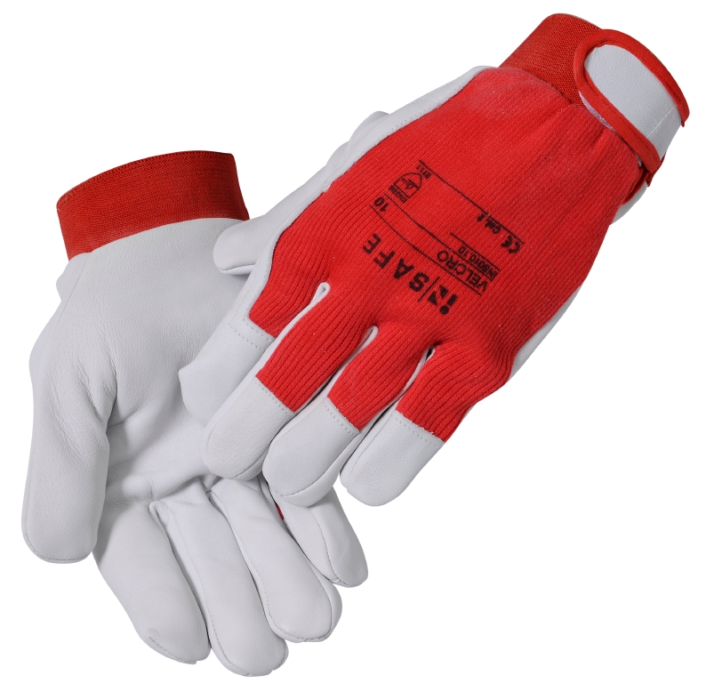 InSafe Velcro är en praktisk arbetshandske med förstärkning i getskinn på handflata, tumme och fingertoppar, vilket ger extra slitstyrka och bra fingerkänsla. Ovanhanden är tillverkad i nylon/polyester för komfort och flexibilitet. Handsken har kardborrestängning som gör det enkelt att justera passformen.