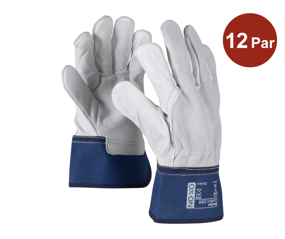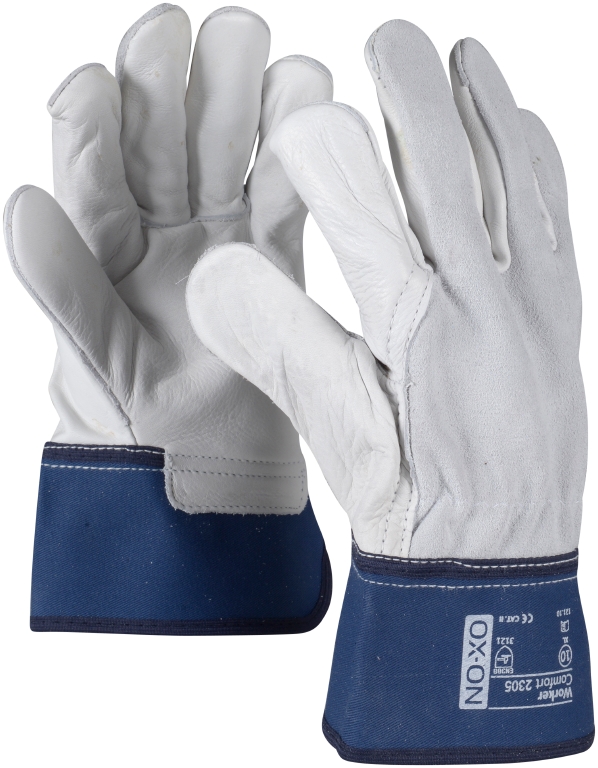 OX-ON Worker Comfort 2305 är handsken för dig som behöver en extra hållbar arbetshandske med bra skydd för handleden när du arbetar med grövre arbete som takläggning, inom jordbruk, skogsbruk eller transport. Den övre delen består av bomull med andningsförmåga, vilket ger dig utmärkt komfort och flexibilitet. Handflatan, tummen och fingertopparna är gjorda av oxhud vilket gör handsken mer hållbar och ger samtidigt en värmeavvisande effekt. Handsken har också en stark förstyvad manschett som ger handleden extra skydd. Worker Comfort 2305 är en arbetshandske som uppfyller höga kvalitetskrav.