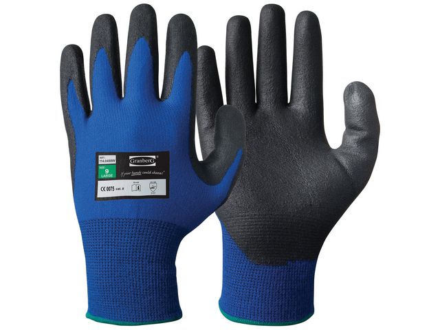 I mer än 50 år har Granberg levererat arbetsglädje och trygghet genom sina skyddshandskar av högsta kvalitet. De har ett räfflat mönster på handflatan och fingrarna vilket gör dem idealiska för användning i torra eller våta förhållanden tack vare den halksäkra ytan. Bomullsfodret inuti handskarna gör dem extra bekväma. Dessutom är de längre än vanliga handskar vilket ger skydd ovanför handlederna.