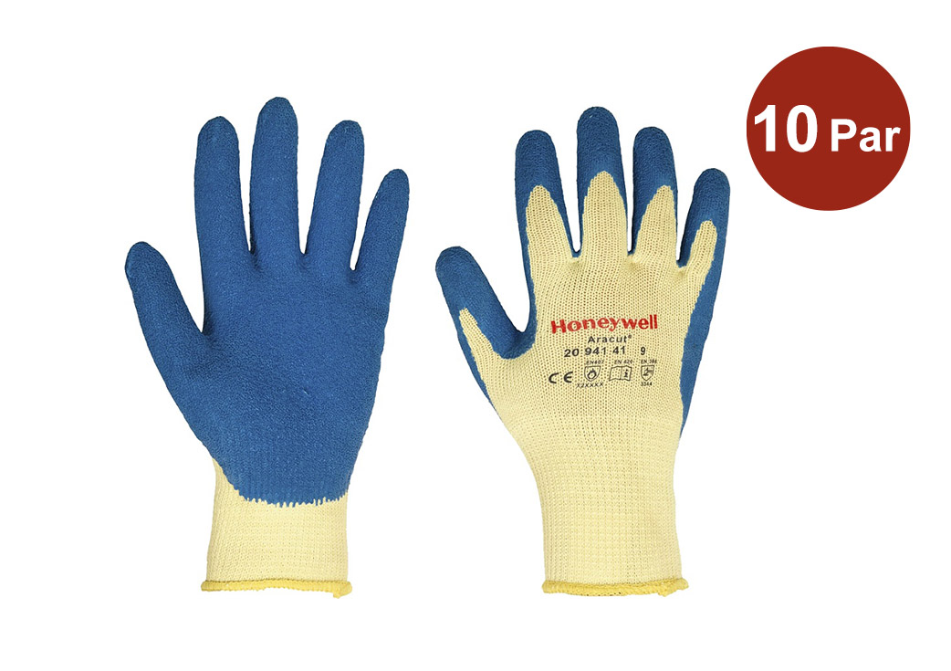 Honeywell Aracut Lat är en skärtålig stickad handske tillverkad i 100 % Kevlar. Handsken har fingertoppar doppade i blå latex för förbättrat grepp och känslighet. Värmebeständig och erbjuder god fingertoppskänslighet. Längd 26 cm. Skärmotståndsnivå 5. Godkänd enligt EN 407 och EN 388.