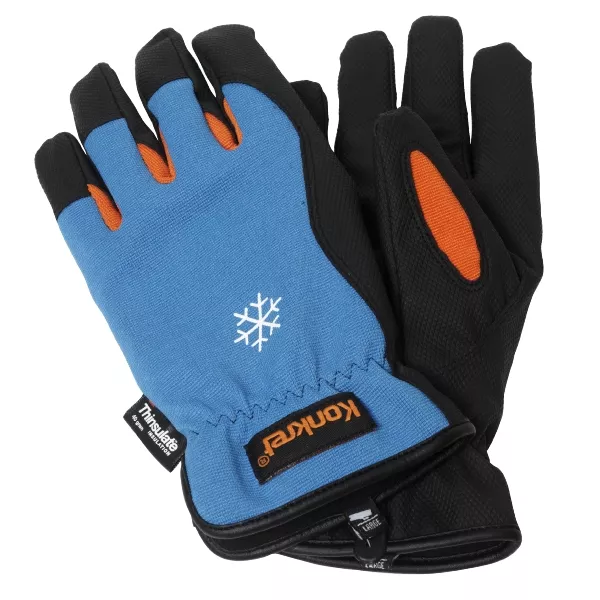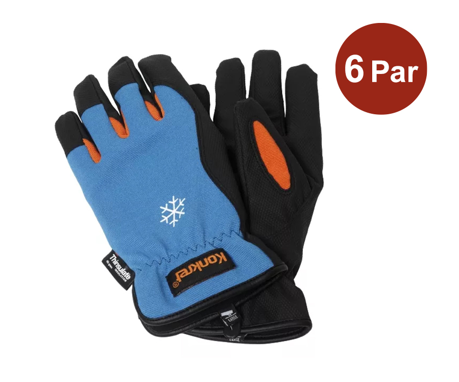 Varmfodrad med fleece, membran och 3M Thinsulate 40g. Resår runt om handleden. Kromfri. Blå/svart.