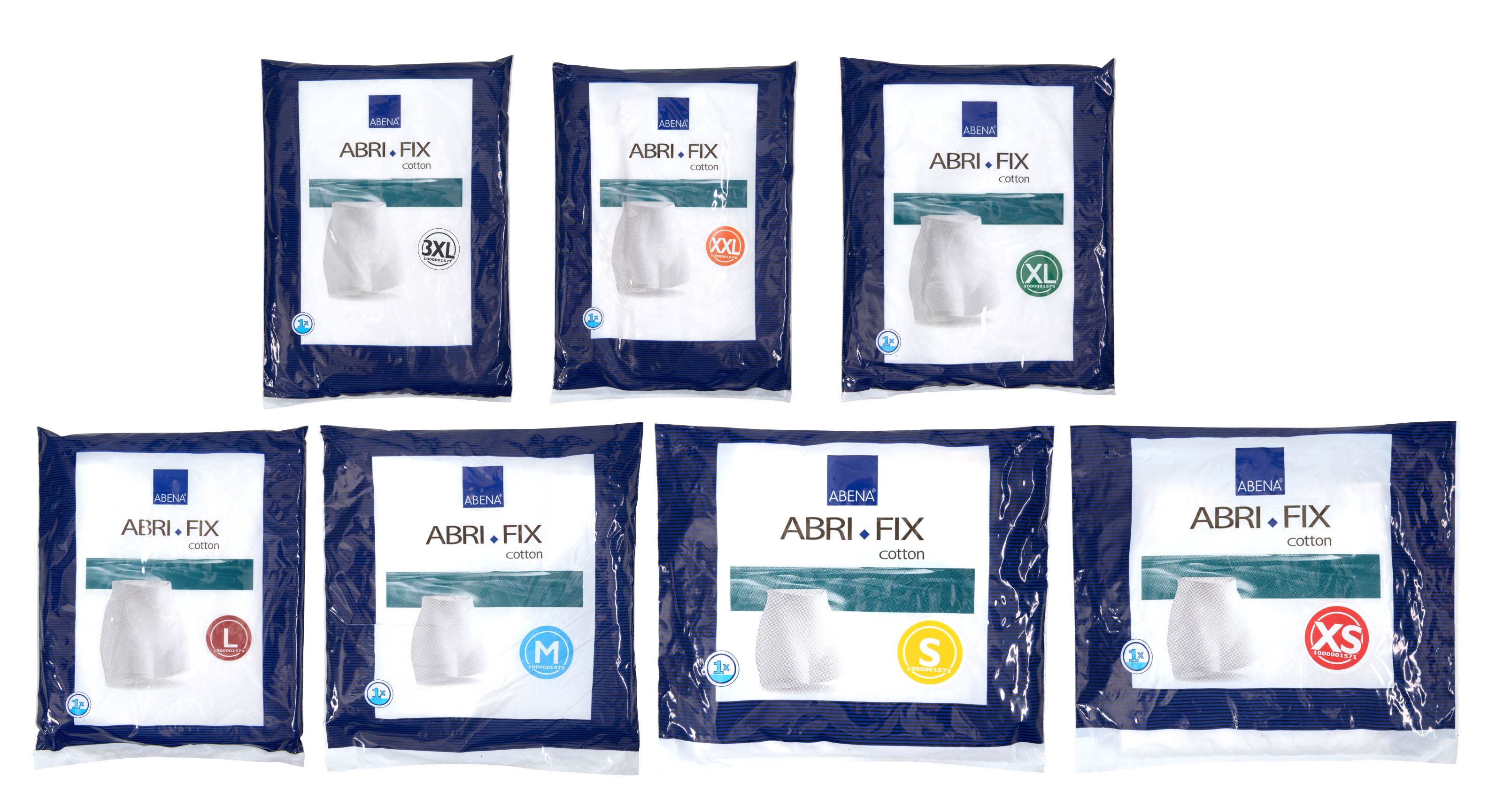 Abri-Fix Cotton är en elastisk andningsbar fixeringsbyxa med ben, tillverkad i främst bomullsmaterial. Bomullsmaterialet garanterar att fukt transporteras bort från huden, för en torr och behaglig känsla. Byxorna ser ut som vanliga underkläder. Det elastiska materialet och sticktekniken håller skyddet tätt mot kroppen vilket garanterar läckagesäkerhet. Det gör att de fungerar optimalt oavsett aktivitetsnivå och rörelseförmåga. Den sömlösa sticktekniken – ett innovativt sätt att producera textilier som är nästan fria från sömmar – förhindrar tryckmärken och hudirritation. Produkterna kan tvättas 100 gånger och är därför mycket kostnadseffektiva genom längre användningstid. Abri-Fix Cotton har färgkodad midjeresår för respektive storlek, och är även märkta med produktnamn, tvättråd och materialsammansättning. 80 % bomull, 14 % polyamid, 6 % elastan.