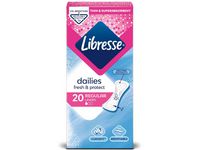 Libresse Regular absorberande Daily Fresh trosskydd. Perfekt för daglig användning så att du alltid känner dig fräsch. Libresse trosskydd är andningsbart för att ta hand om din V-zon. CurveFit utformning för att följa din kropp och hålla sig på plats, oavsett vad du gör. Trosskyddet håller dig torr och fräsch varje dag. Dermatologiskt testat och utan parfym.