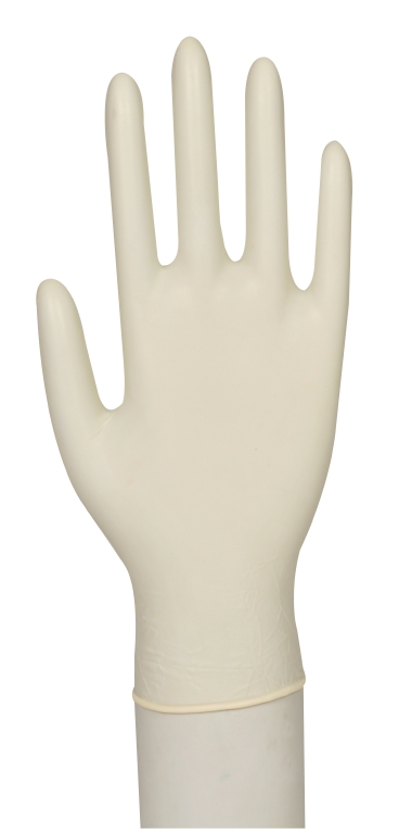Bekväma engångshandskar i naturlatex, puderfria och ambidextrous med slät yta och rullad mudd. Designade för säkerhet och komfort i professionella miljöer såsom vård, laboratorier och livsmedelshantering.