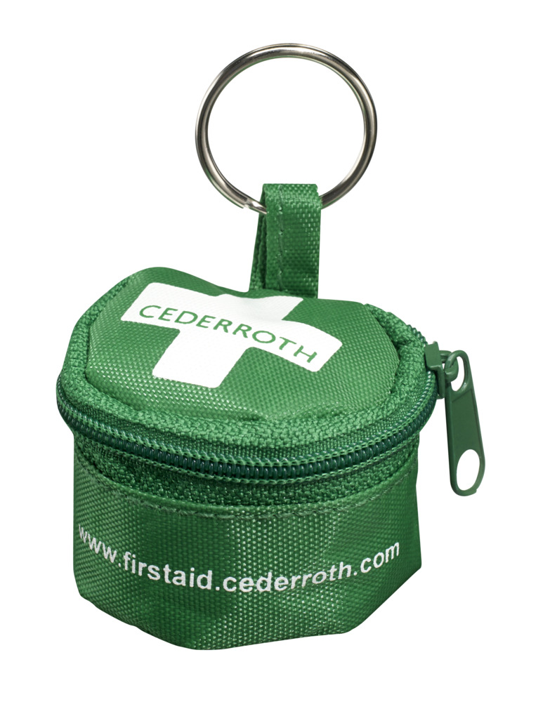 Cederroth Andningsmask i praktiskt etui med nyckelring. Hjälpmedel för att ge mun-mot-mun-andning på rätt sätt samtidigt som det minskar risken för kontakt mellan hjälpare och skadad. Andningsmask med backventil och tydliga instruktioner tryckta direkt på duken.