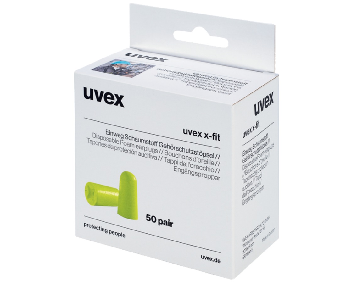 Hörselproppar Uvex X-Fit 50 par är ergonomiskt utformade engångsproppar som ger mycket hög bullerdämpning och hög komfort. De är lämpliga för långvarig användning i miljöer med höga ljudnivåer samtidigt som de möjliggör god uppfattning av tal. Tillverkade i mjukt skum för maximal användarkomfort. Innehåll: 50 par, löst förpackade i dispenser.