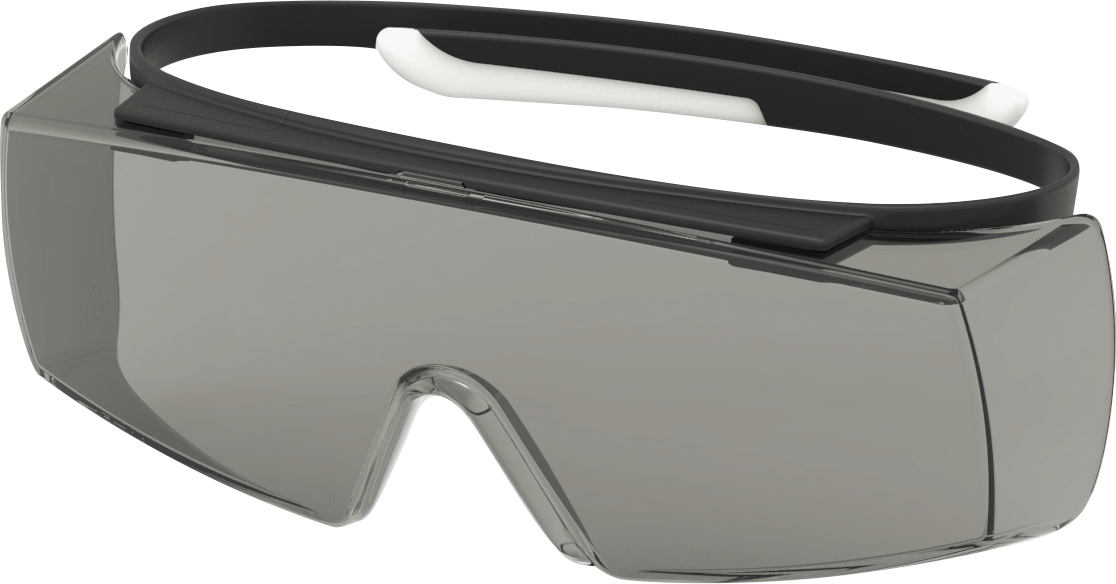Superlätta skyddsglasögon som kan bäras över de flesta vanliga glasögon. Mörkt glas. Reptålig på båda sidor av glaset. Skalmarna går gradvis från hårt till mjukt material och sluter sig försiktigt om huvudet istället för att placeras bakom öronen. Absorberar UV-strålar 100 %.