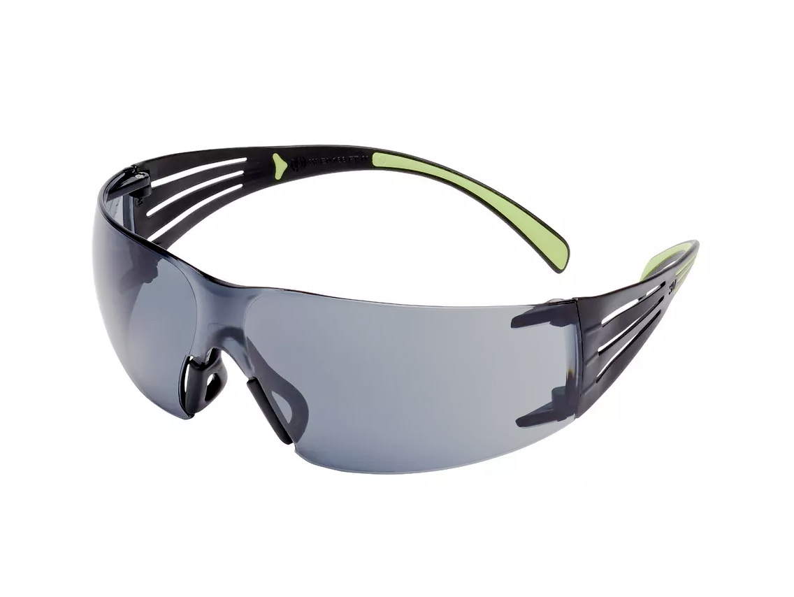 Använd 3M SecureFit 400 Skyddsglasögon när du vill ha ett bekvämt ögonskydd i omslutande modell. De gråtonade skyddsglasögonen som väger bara 19 g har skalmar med vaddering ovanför öronen och en mjuk, justerbar näsbrygga som ger en tätsittande och bekväm passform. Den omslutande designen hjälper till att skapa ett brett synfält, och de stilfulla neongröna skalmarna ger skyddsglasögonen ett unikt utseende. Skyddsglasögonen passar både män och kvinnor och har utformats för att skydda ögonen med 99,9 % UV-skydd. De är kompatibla med hörsel- och andningsskydd från 3M. Testade och godkända enligt europeiska standarder.