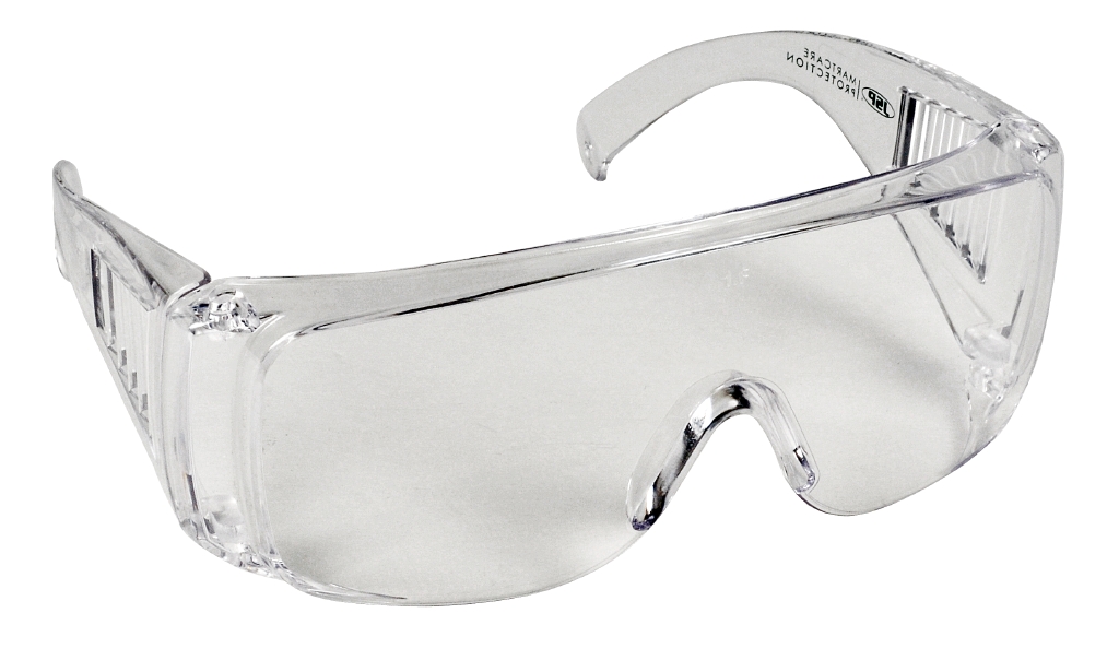 Slipade glasögon med klar lins tillverkade i polykarbonat med sidoskydd. Glasögonen kan bäras utanpå dina vanliga glasögon och passar utmärkt som gästglasögon.