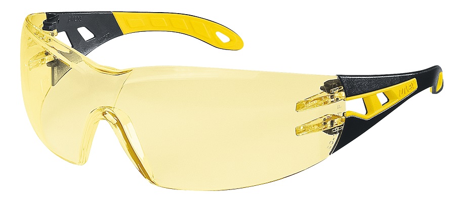 Stilrena glasögon med gula glas. En båge som är både hård och mjuk för en skonsam passform. Ergonomisk passform ger extra skydd på sidorna och ner mot kindbenen. Glasen har den bästa imskyddsbehandlingen på marknaden och är repsäkra på utsidan. Glasen ger högt mekaniskt skydd och absorberar 100 % av UV-strålarna.