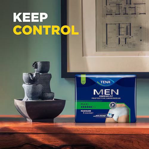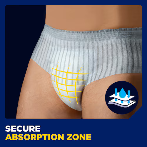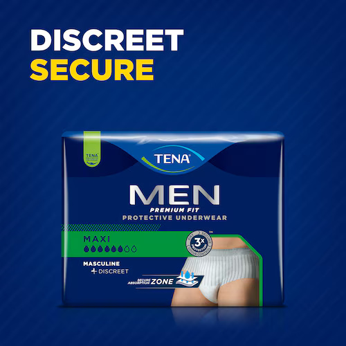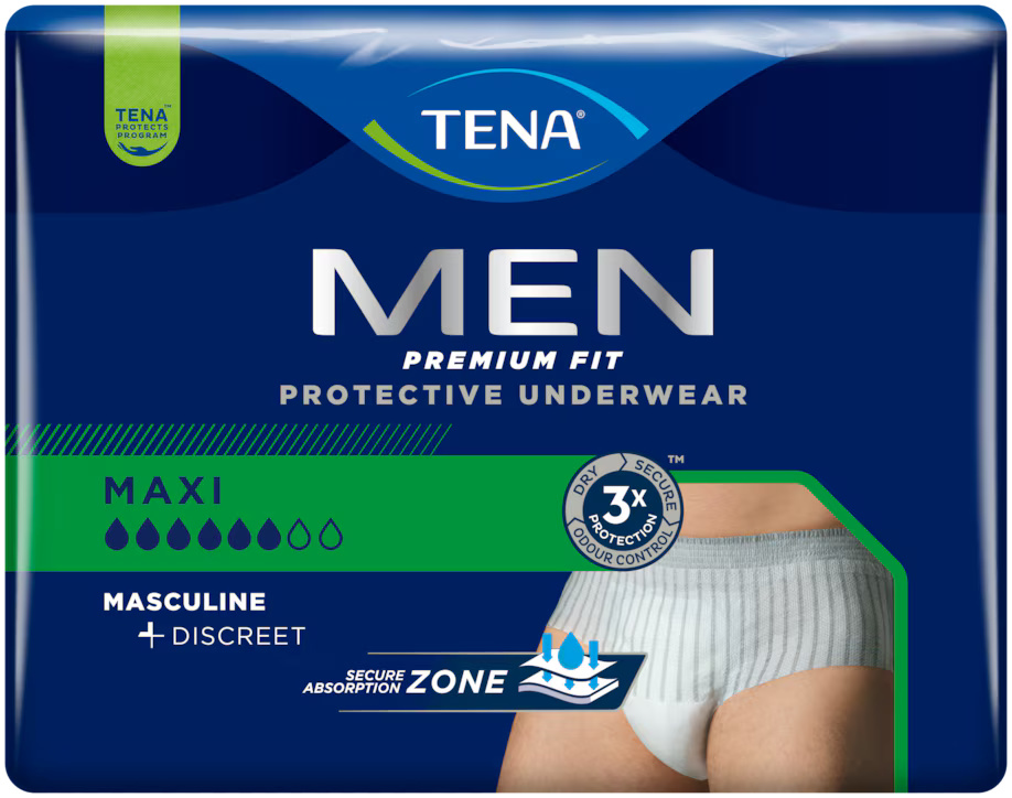 Låt inte urinläckage stoppa dig från att leva det liv du vill. TENA Men Premium Fit Maxi är absorberande engångsunderkläder som ser ut och känns som vanliga kalsonger – med maskulin design, resårmidja och randigt mönster. De är tillverkade i ett andningsbart, bomullsliknande material som ger maximal komfort och följer kroppens rörelser. Med en säker absorptionszon framtill och dubbla kärnor med superabsorbenter får du trippelt skydd mot läckage, lukt och fukt. Skyddet är diskret, pålitligt och passar perfekt för dig som vill känna dig trygg på jobbet, på gymmet eller i sociala sammanhang.