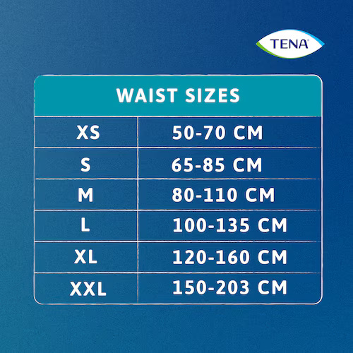 TENA Pants Super är ett säkert, bekvämt och diskret byxskydd för medelstora till stora urinläckage, lämpligt för både kvinnor och män samt uppegående vårdtagare. Skyddet har hög absorptionsförmåga med FeelDry Advanced™ Zone som snabbt absorberar vätskan och kapslar in den, vilket håller huden torr och skyddad längre. Den kroppsnära passformen och textilliknande stretchmaterialen ger komfort, diskretion och säkerhet under hela dagen. Produkten är dermatologiskt testad och godkänd av Skin Health Alliance för att bidra till hudhälsa och minska risken för irritation.