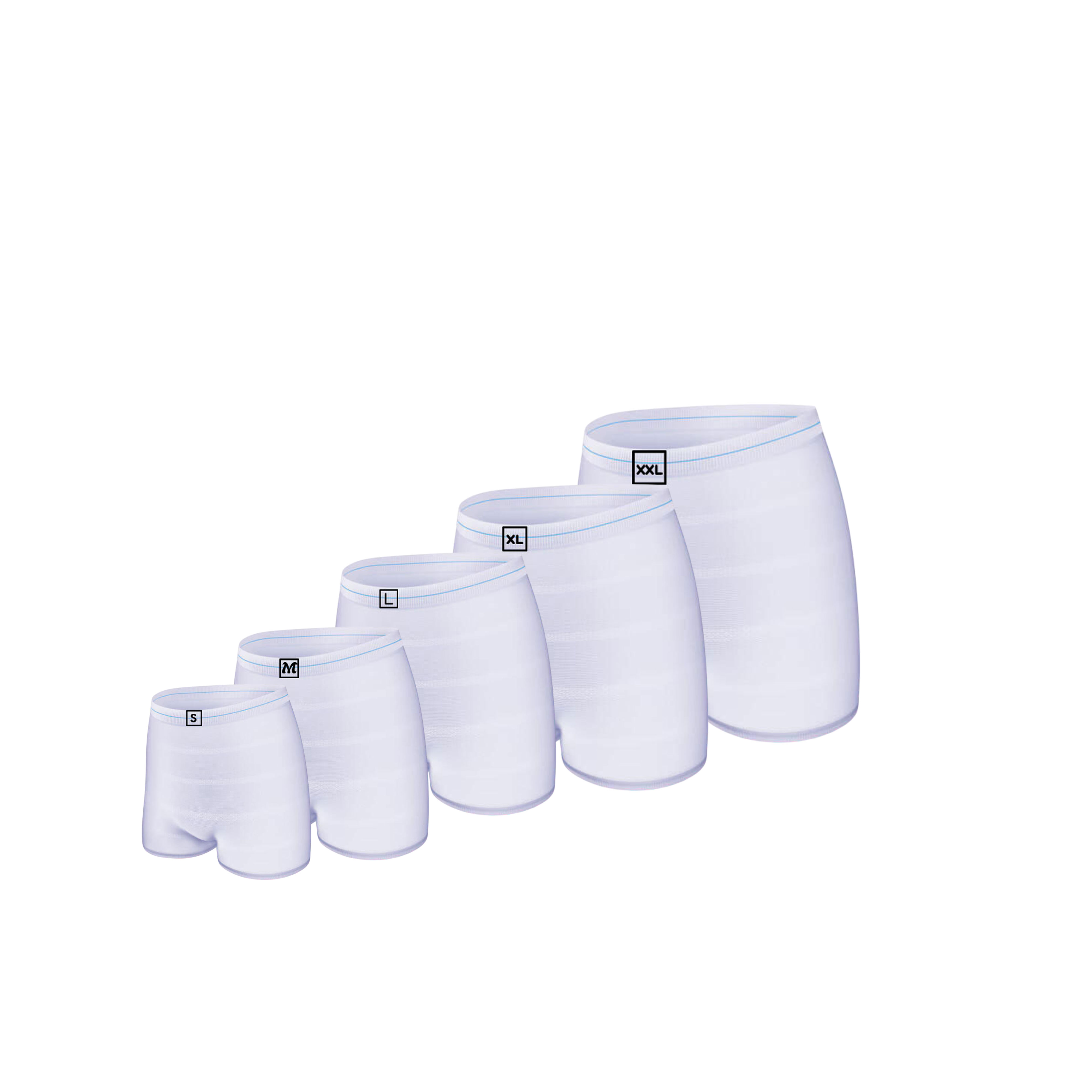 ● Tvättbara och återanvändningsbara: Fixeringsbyxorna kan tvättas i 60°C (använd tvättpåse) och torktumlas på låg värme upp till 50 gånger utan att förlora sin passform.