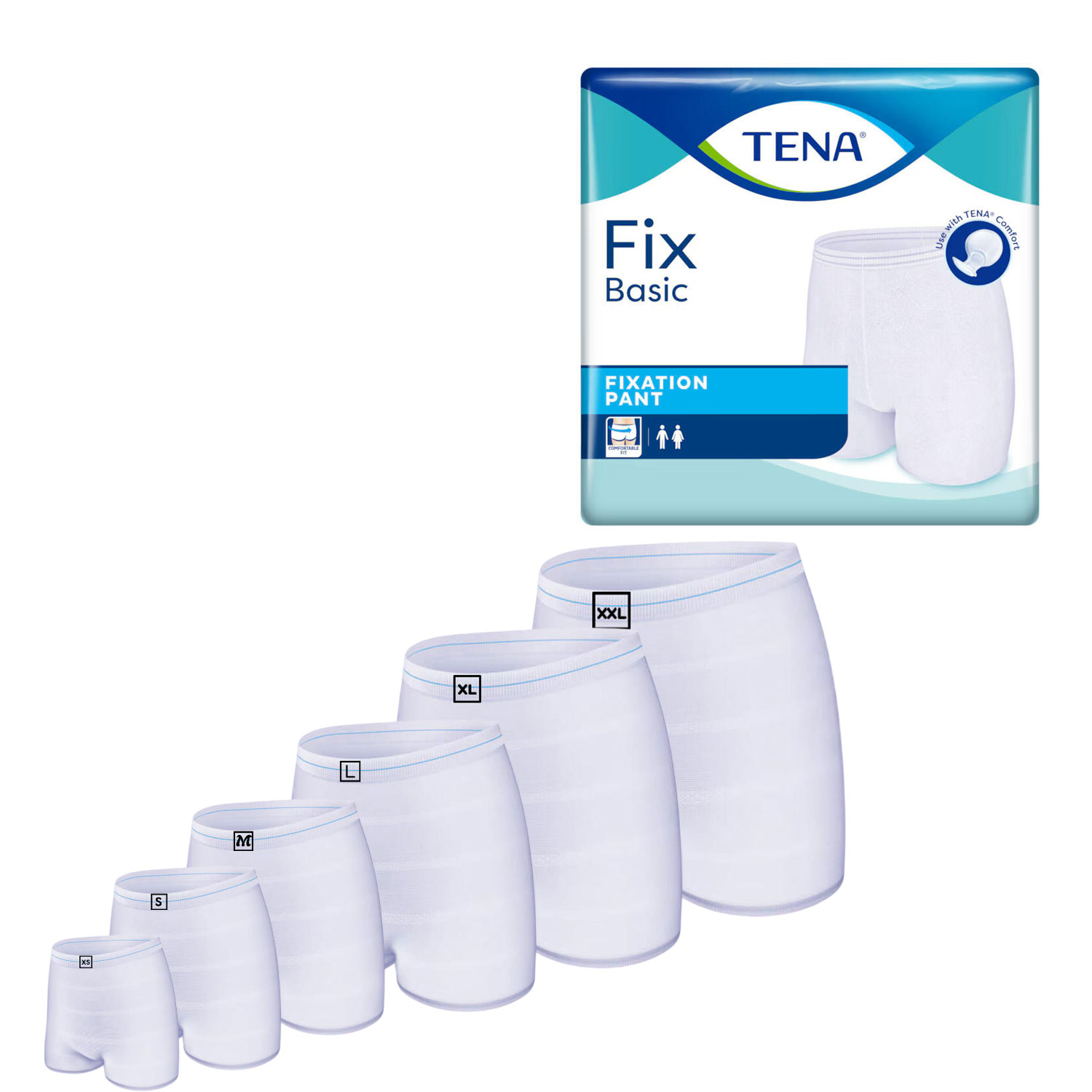 TENA Fix är en mjuk, bekväm och mycket underklädeslik fixeringsbyxa som håller kroppsformade inkontinensskydd som TENA Comfort säkert på plats. De återanvändningsbara och andningsbara fixeringsbyxorna har en sömlös design som minimerar antalet tryckpunkter och ger ett säkert och diskret skydd både dag och natt. Tack vare det elastiska materialet i polyester och elastan sitter de bekvämt och följsamt mot kroppen, och främjar god hudhälsa. TENA Fix kan tvättas upp till 50 gånger i 60°C och torktumlas på låg värme utan att tappa formen.