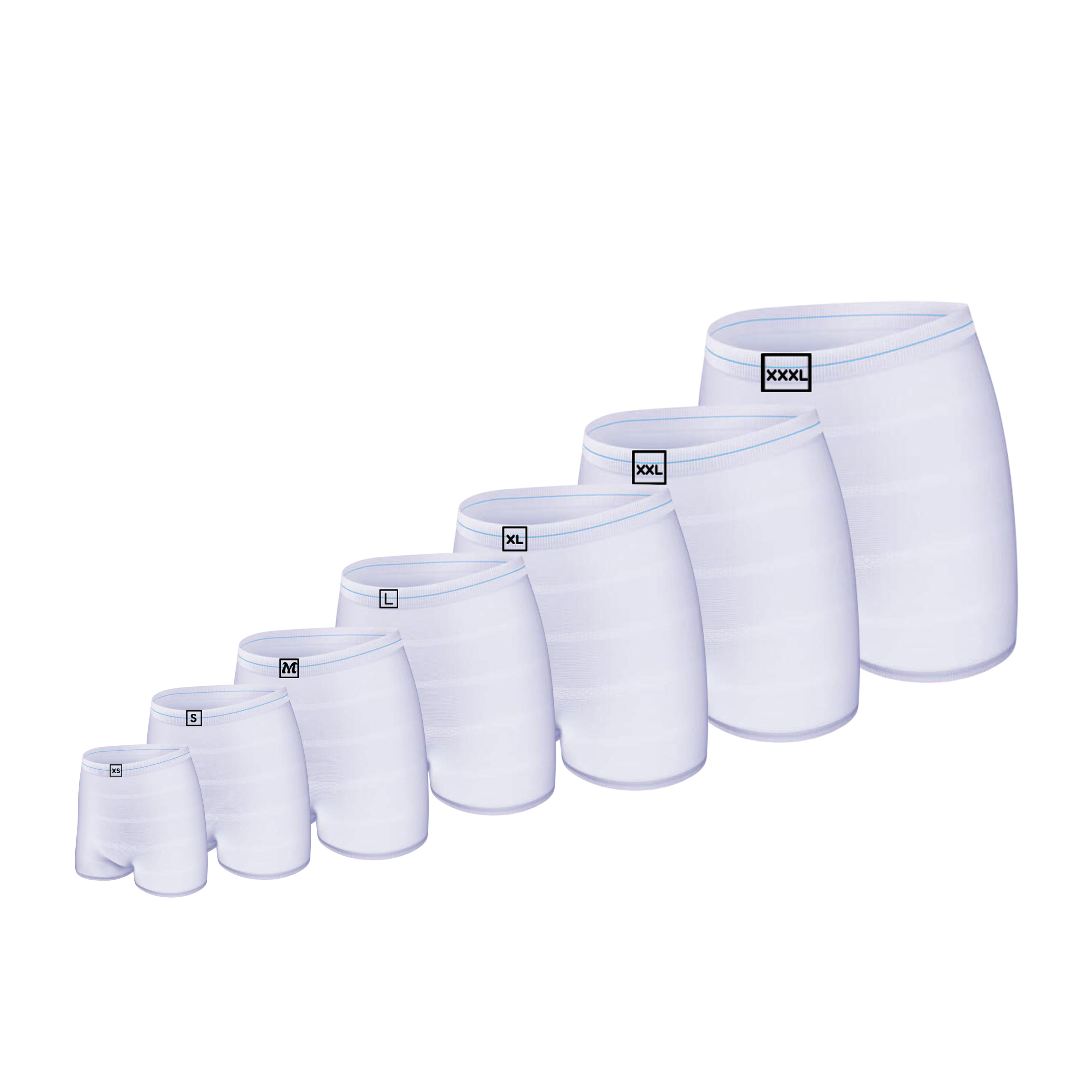 ● Tvättbara och återanvändningsbara: Fixeringsbyxorna kan tvättas i 60°C (använd tvättpåse) och torktumlas på låg värme upp till 50 gånger utan att förlora sin passform.